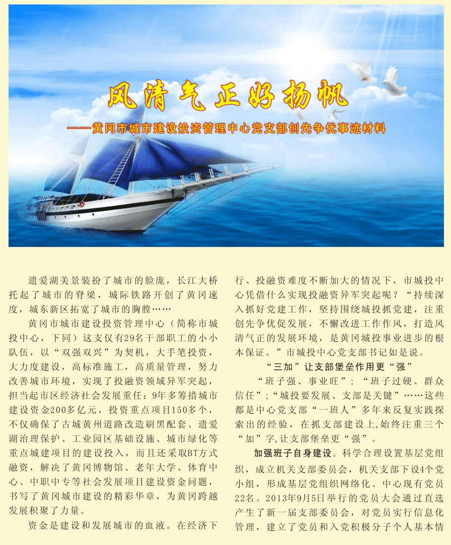 黃岡市城市建設投資管理中心黨支部創(chuàng)先爭優(yōu)事跡材料