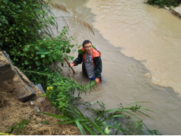 二、融于一體、打成一片,用行動展現(xiàn)不忘初心。市城投公司黨委7月2日晚接到駐黑石寨村第一書記魏星同志的災情報告后,7月3日一早緊急安排陳鵬、齊繼明、余會勝三名優(yōu)秀黨員組成突擊隊,加強該村防汛救災力量。突擊隊一到村部,積極協(xié)助村兩委干部巡查水庫、河道及田垅,發(fā)現(xiàn)河堤險段、險塘、險庫6處,排除險情6處,并對村里12處土坯房和危房一一進行了詳細察看。7月3日下午,黑石寨村位于兩山河溝交匯處河堤經(jīng)河水沖刷突然塌方28米,直接威脅河堤外群眾房屋、生命財產(chǎn)和農(nóng)田安全,市城投公司突擊隊、鎮(zhèn)政府聯(lián)村干部及村兩委一班人積極行動,迅速組織村黨員打樁、填石方、灌沙袋,跳入齊腰深的水中筑起防護坡,努力將災害損失降到最低,市城投公司駐村第一書記魏星帶頭下河搶險,突擊隊與村民一起灌填沙袋200多袋,充分發(fā)揮了黨員的先鋒模范作用,展現(xiàn)了不忘初心,體現(xiàn)了不怕吃苦,不怕累的優(yōu)良作風,得到了村民的認可和贊許。