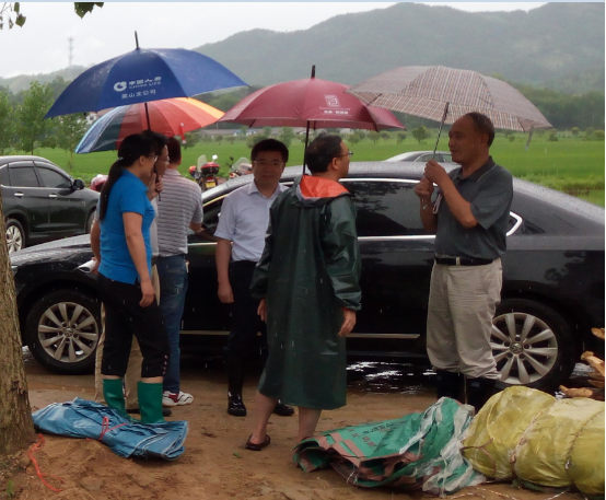 7月5日下午,市委常委、市委宣傳部陳繼平部長、市委夏劍平副秘書長冒雨來到英山縣南河鎮(zhèn)黑石寨村視察防汛搶險(xiǎn)工作。
