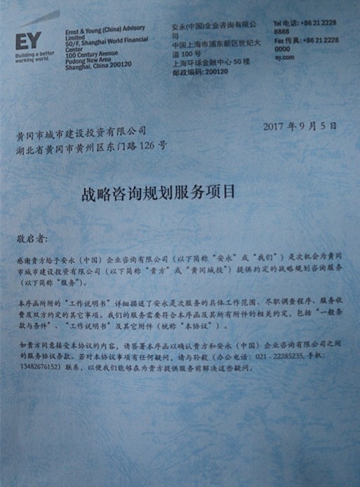 面對新形勢,為繼續(xù)服務(wù)好我市城市建設(shè)和經(jīng)濟(jì)發(fā)展,積極響應(yīng)市委及政府要求,我公司抓住轉(zhuǎn)型和集團(tuán)組建的契機(jī),嚴(yán)格審批流程,聘請實力雄厚的安永企業(yè)咨詢公司來黃岡對城投公司和城發(fā)集團(tuán)整體戰(zhàn)略、管控體系、資產(chǎn)重組、財務(wù)規(guī)劃等進(jìn)行頂層制度戰(zhàn)略設(shè)計,并為我市投融資機(jī)制改革提供建議。