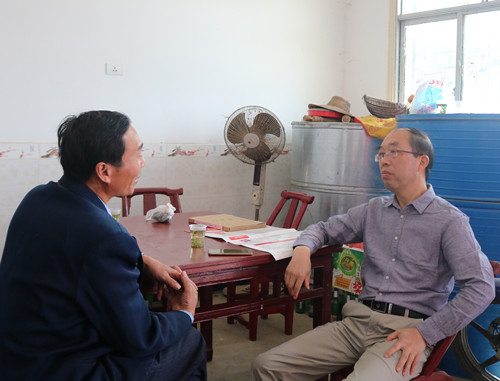 老鸛沖村是雷店鎮(zhèn)第一大村,各村組地域分布廣,大家翻山越嶺、爬坡過(guò)坎前往各自負(fù)責(zé)的貧困戶(hù)家中訪(fǎng)貧問(wèn)苦。該村15組杜典堂是李春生同志包保貧困戶(hù)之一,李典堂年僅18歲,身患羊癲瘋,有精神障礙,無(wú)勞作能力,其父母身體欠佳,李春生同志當(dāng)即送上慰問(wèn)金并與其拉家常、交心談心,進(jìn)一步掌握其生產(chǎn)、生活、健康等情況。李春生同志要求入戶(hù)干部協(xié)調(diào)村委為其家盡快安排合適的公益性崗位,勉勵(lì)其樹(shù)立信心,戰(zhàn)勝困難。
