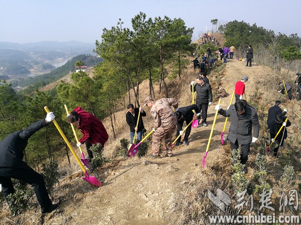 3月9日上午,英山縣委書記陳武斌率縣“四大家”領(lǐng)導(dǎo)、縣直機(jī)關(guān)單位和溫泉鎮(zhèn)政府,以及溫泉鎮(zhèn)直單位和部分村干共計(jì)數(shù)百人,來(lái)到“四季花!被纳缴,開展植樹造林活動(dòng),從而掀起該縣春季植樹造林的高潮。