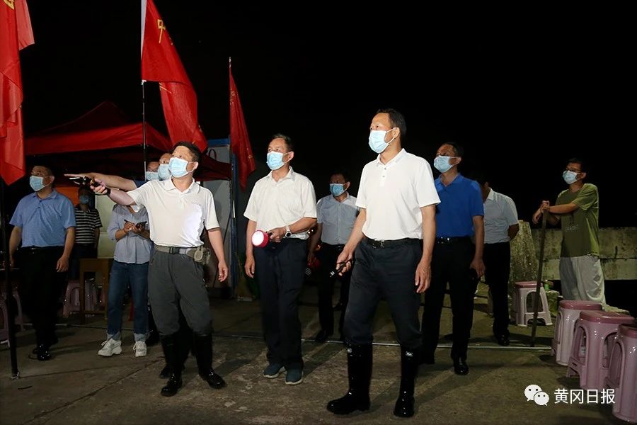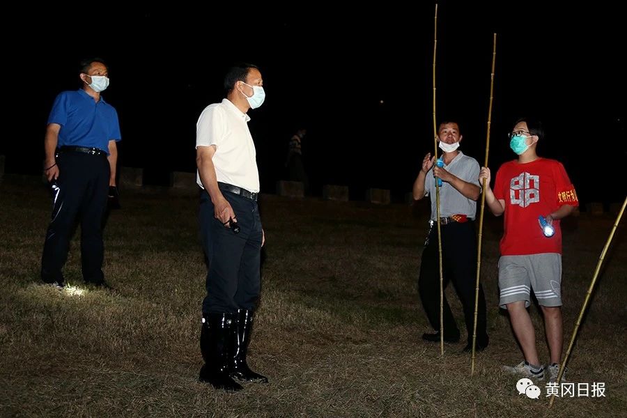 從黃州沙街口處走上江堤,劉雪榮打開手電查看江面水位。7月13日,長江洪峰已順利通過我市,黃岡長江段水位全線小幅回落,但我市防汛形勢依然嚴(yán)峻!敖刂7月14日晚8時(shí),長江黃岡段全線超警戒水位1.01米—2.31米,其中黃州段超警戒1.01米!眲⒀s對我市長江全線水位變化情況熟記于心。當(dāng)看到一處江灘幾棵樹倒在江水里,他叮囑隨行的黃州區(qū)負(fù)責(zé)人要查清原因,強(qiáng)調(diào)退水時(shí)不能麻痹大意,要確保長江大堤萬無一失。