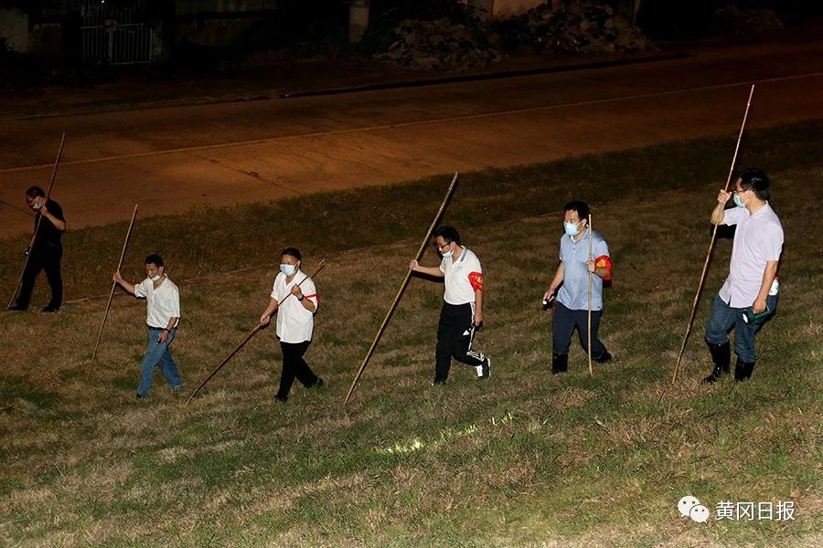 7月14日晚9時(shí)許,長江干堤黃州段,江風(fēng)徐徐,一座座防汛哨棚燈火通明,值守人員打著手電筒,拿著竹篙來回巡堤……